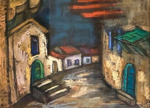 Pastel painting by Hungarian Painter Blanca Tauber (1910-1989) – Prague scene.