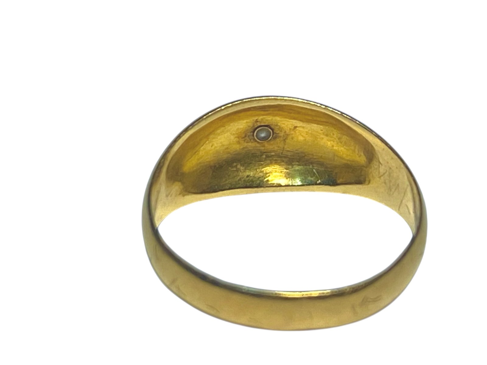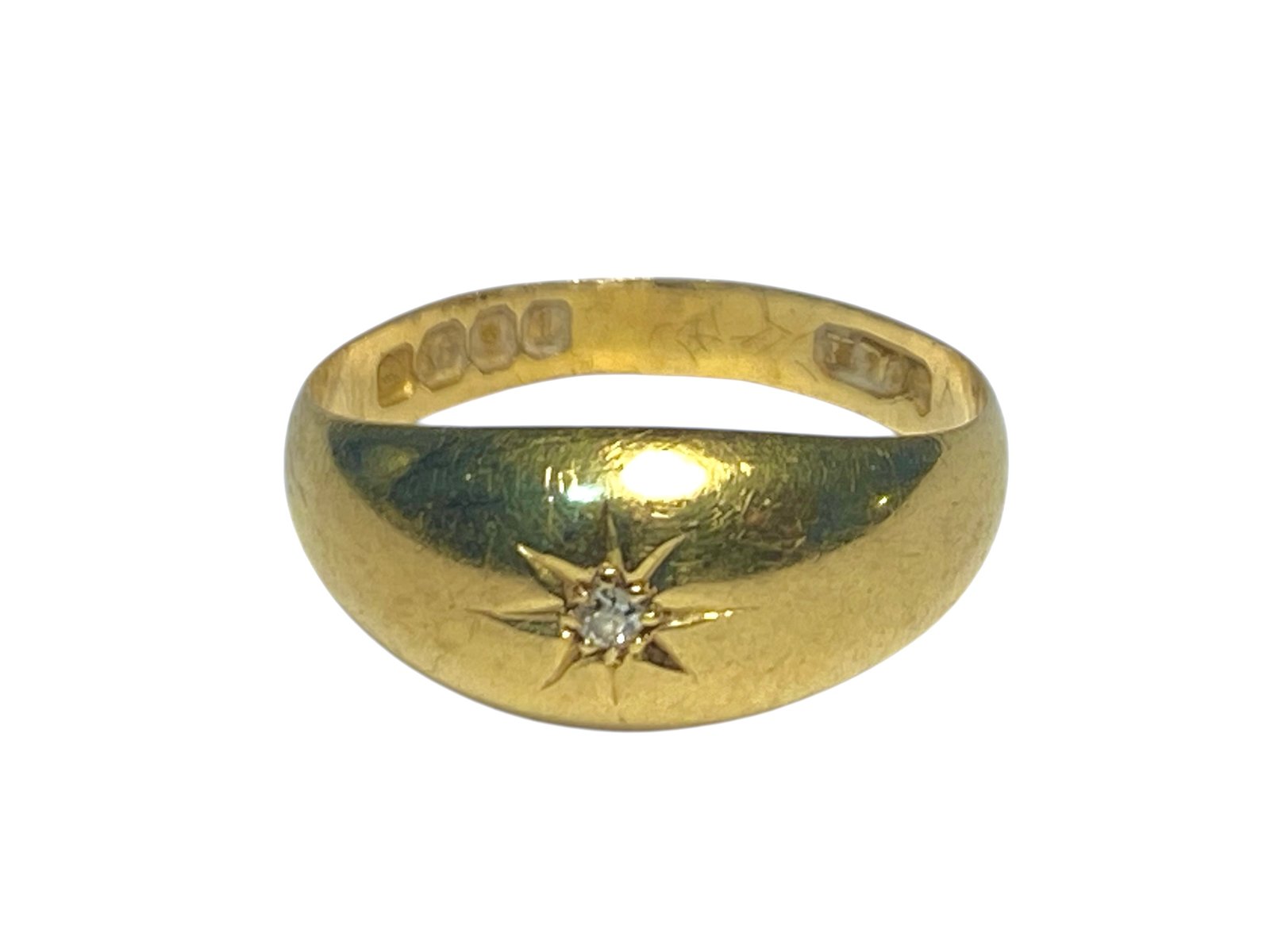 A very attractive 18ct Gold diamond Band Ring, Gypsy set, with a centrally placed round cut diamond.