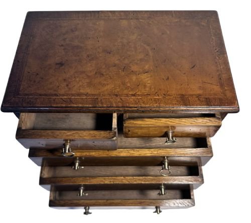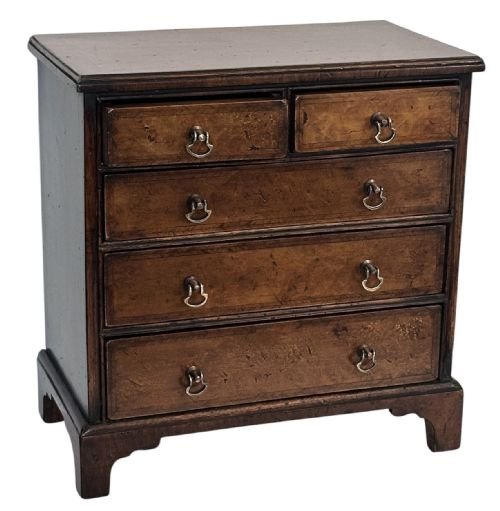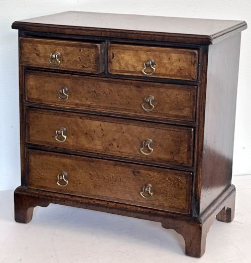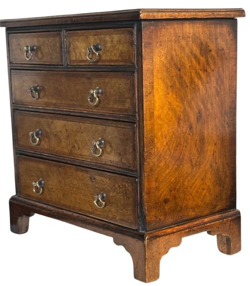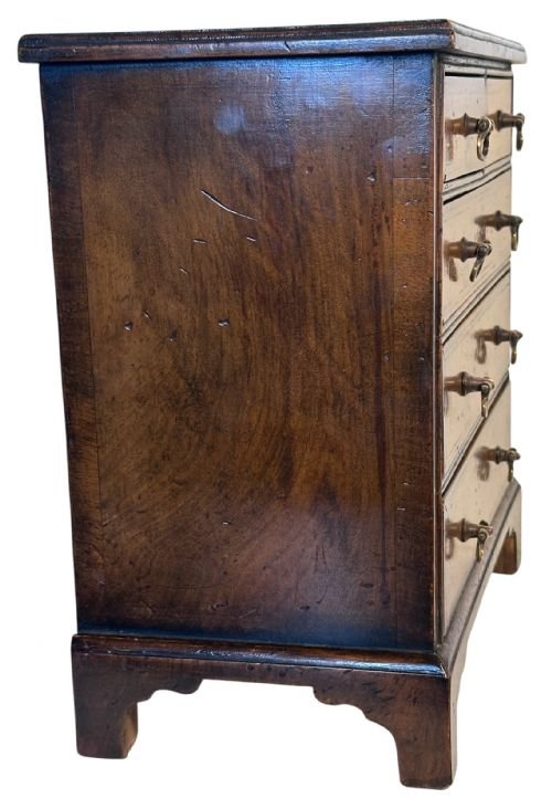 A charming late 19th Century apprentice piece chest of drawers made from walnut.