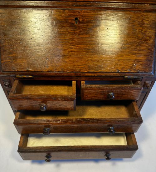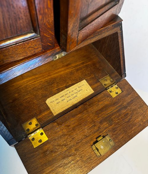 A very charming and beautifully constructed apprentice dresser made from oak. There is a label to the interior which reads “This was made out of an old cabinet dated 1693 with the inscription Jane Loyd”