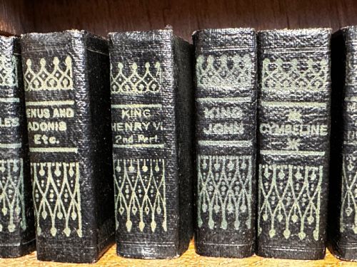 It is in very good condition and contains 40 miniature volumes of Shakespeare books, published by Allied newspapers Limited.