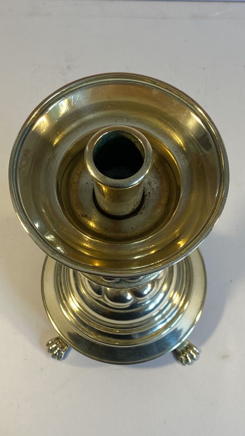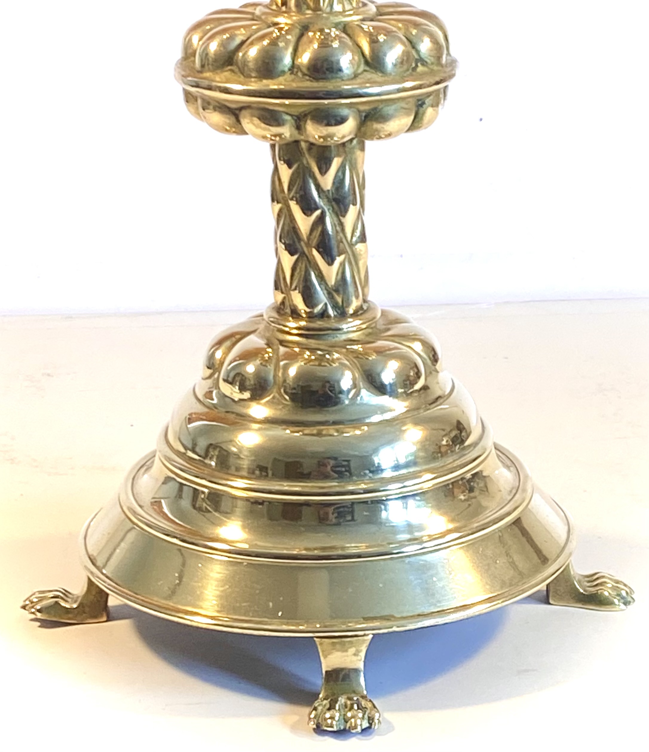 Made from brass, they are of knotted gadrooned form culminating on paw feet.