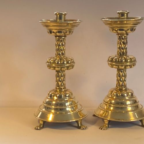 Brass Candlesticks in Gothic Revival Form