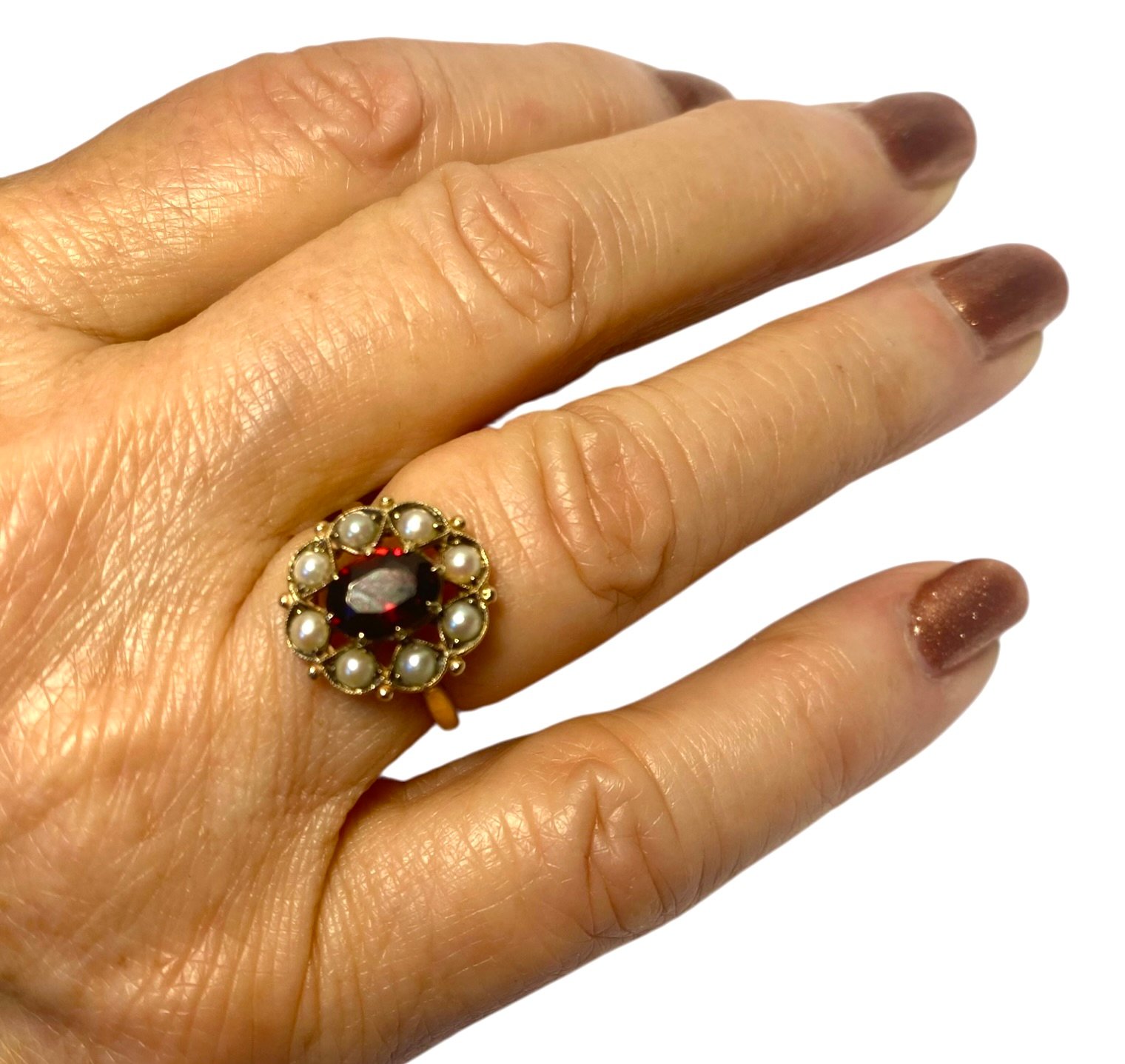 Garnet and Seed Pearl Cluster Ring