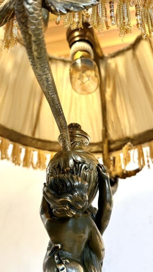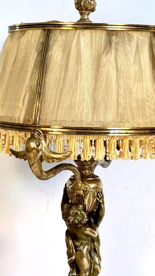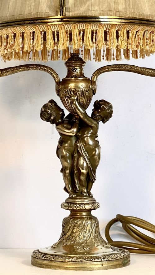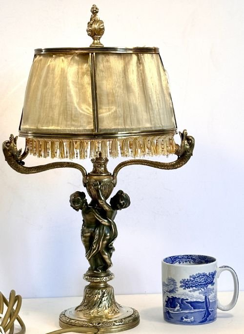 The lamp overall has the gilt brass original components and no modern extras.