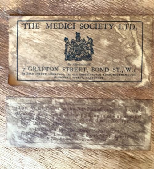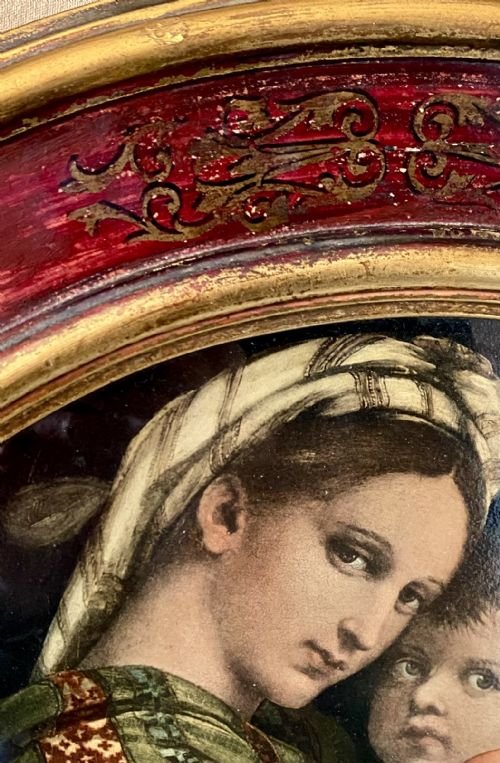 A beautiful classical print put out by the Medici Society of “the Madonna of the Chair” painted by Raphael around 1513.