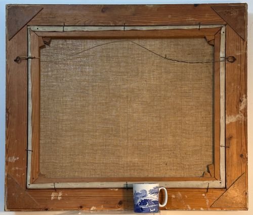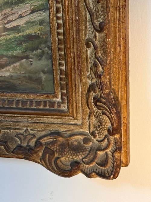 The painting is housed in the originally gilded wooden frame which is not heavily gilded, perhaps more of a wash.