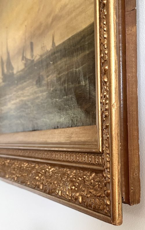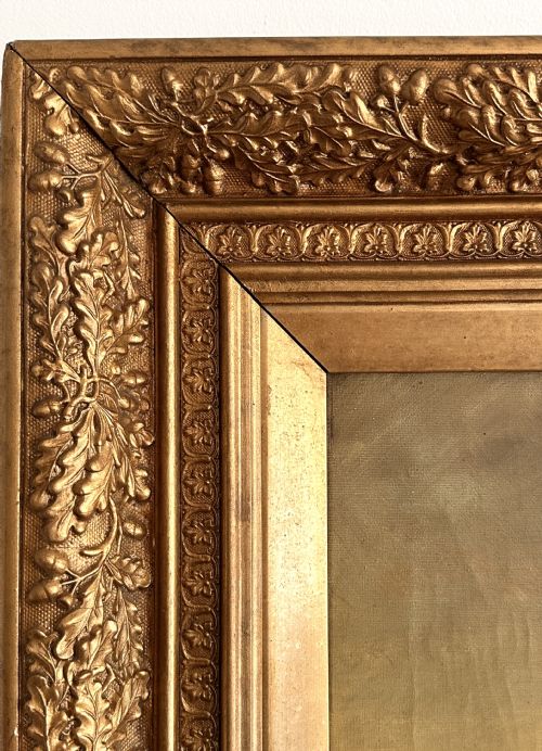 The painting has the beautiful gilt gold original frame that sets off the painting rather well.