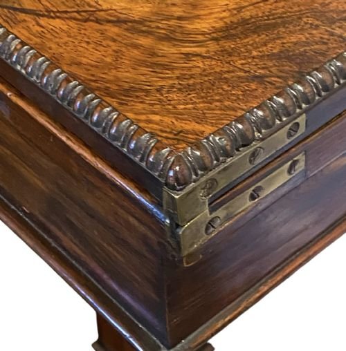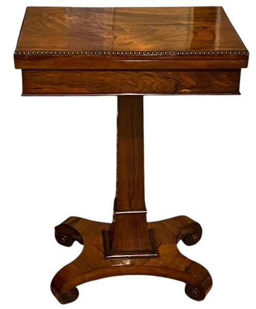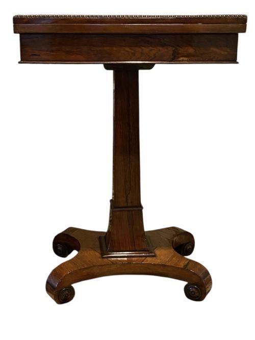 An exceptional Regency rosewood games table with a fold-over top with gadrooned edges. .