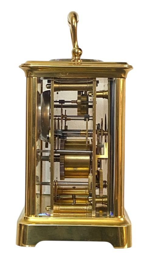 A good Swiss carriage clock with alarm, striking on a bell, made around 1900.