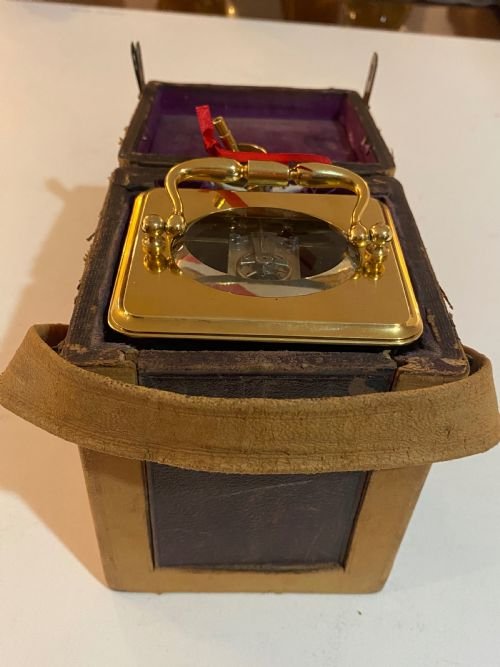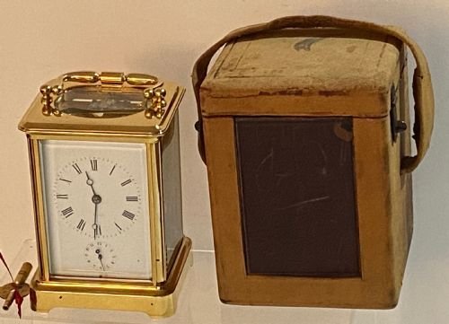 Swiss Eight Day Carriage Clock with Alarm, in original leather